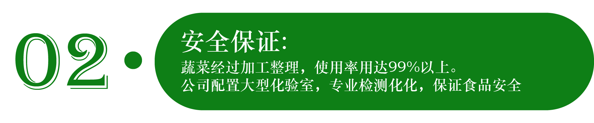 公司本著保質(zhì)保量、始終如一的經(jīng)營理念,誠摯為客戶著想努力為客戶分憂。經(jīng)過長期開拓運作,在經(jīng)營之中,不斷思考總結(jié),對蔬菜配送、食品安全監(jiān)控 具備豐富的經(jīng)驗,誠心為各大中型工廠食堂、學校、幼兒園、機關(guān)單位等提供最優(yōu)質(zhì) 最方便、最快捷的服務(wù)。